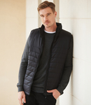 100% nylon pongee outer. Polyester padding.Shower resistant.Topstitched quilting.No quilted stitching on chest and top of back.Stand up collar.Full length zip with non-slip puller.Bound armholes.Plain side panels.Inner pocket.Two front concealed zip pockets.Cut out label.
